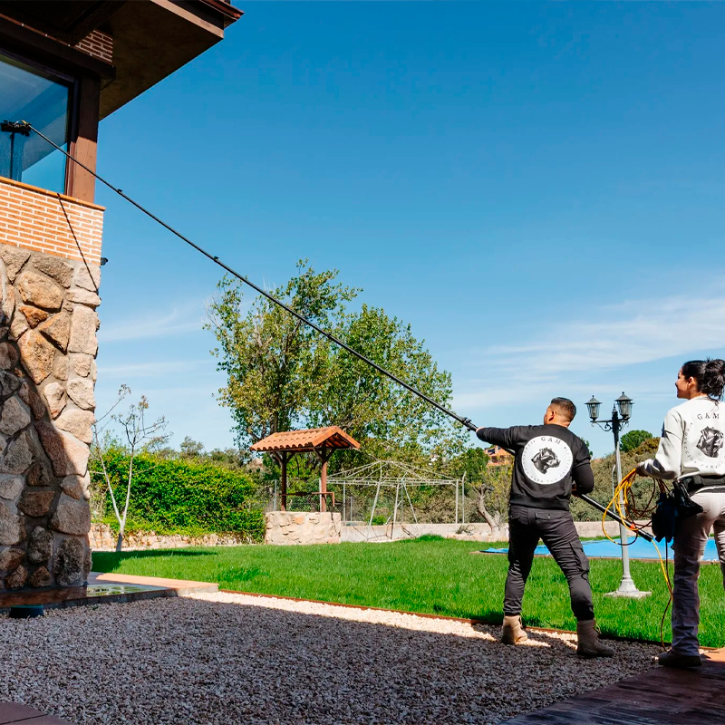 Trabajamos desde el suelo con pértigas telescópicas, sin andamios ni cuerdas: cero exposición al riesgo, mayor rapidez y mínima interferencia en tu espacio.